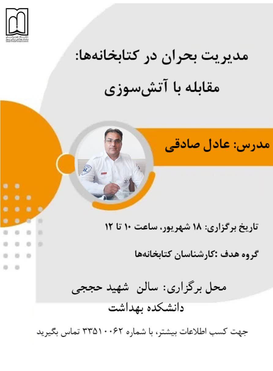 کارگاه تخصصی مدیریت بحران در کتابخانهها: مقابله با آتشسوزیسهشنبه ۱۸ شهریور |